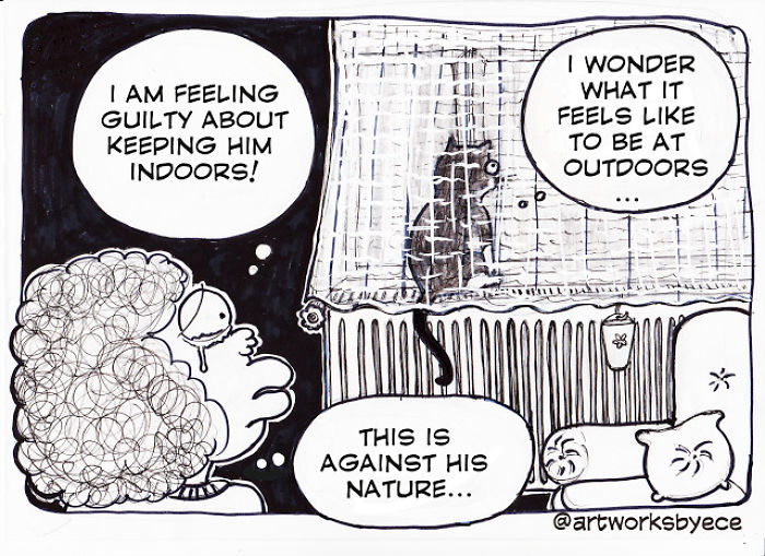 Load More Replies...I have a bit the same problem...! I moved to an apartment on the 1st floor, and I don't have a balcony. My cats were used to live in a house with a big garden. The house next to mine has a flat roof, so I let them jump out of the window to go outside. The problem was that they couldn't jump back inside (which I didn't know at first). And one of my 2 cats fell down to the ground floor...! Now my neighbours have put a small table on their roof, so my cats can jump back inside! But the one that fell down didn't dare to jump anymore ... And now, when my other cat is outside, Kitty lays at the window, and I feel sooooo guilty 'cause she can't go outside anymore :'( I am trying to mke her a bridge though! :-)