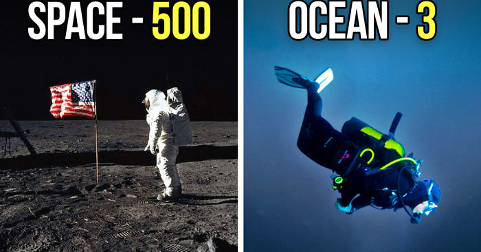 Load More Replies...It really depends on how you look at it. That 500 people number is for people just barley getting out of our atmosphere. We have not gone very far into space. The furthest people have gone is the moon and the furthest our machines have gone is to the ort cloud. No one has gone to the closest star let alone the nearest galaxy. Comparing that to the ocean … really millions of people have been to the ‘bottom’ of the ocean if you are just talking about the edge of the ocean. My kids have snorkeled and swam in the ocean far deeper in direct ratio to the possible depth then people have explored space to the possible depth of space.