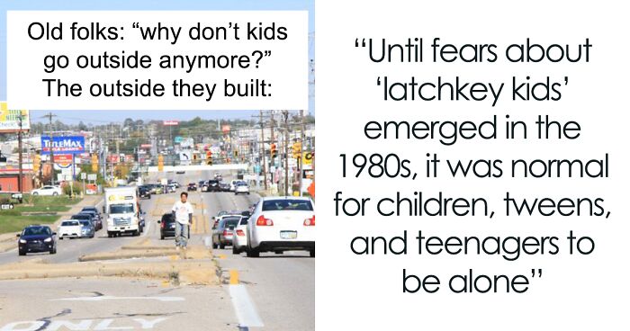 Load More Replies...There is a disproportionate fear that kids will be abducted. It is unbelievably rare, but it does exist. So parents in their desire to protect the kids from this rarity don't encourage just going out. Also most of the kids I hear about are shuttled from one after school sport or learning class to another until dinner then they're too exhausted to do much after that.