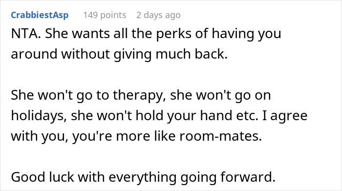 Another thing of note that the author did point out is that the change happened after they had a child. Having children is a major change in a couple’s personal life that also shakes up the relationship dynamic. This could have affected the wife in more than one way that eventually manifested in her being distant.