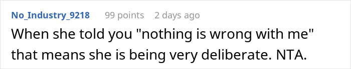 It also seems like he tried to genuinely work on their relationship. The author elaborated in the comments that he had multiple conversations about the situation with his partner that led to quick fixes, but, unfortunately, no lasting impact.