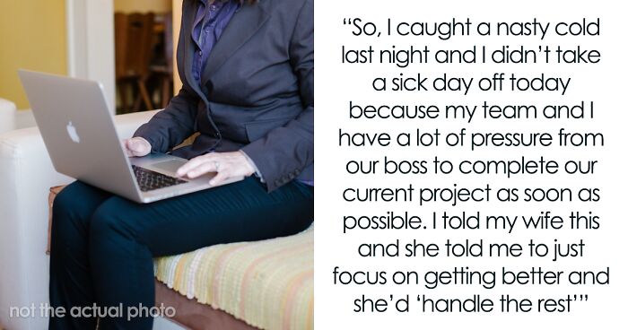 However, one time, the wife stepped in big time. At the time of writing the story, the OP was sick with a nasty cold and he really didn’t want to take a day off work as his team was being pressured to finish their project as soon as possible, so he wanted to be there for them.
