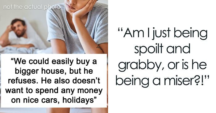 Load More Replies...This needs more context. It could be interpreted as either miserly or careful, and the best advice us always to live beneath your means instead of overstretching and drowning in debt that would bankrupt you if one of you gets laid off, has a lengthy and expensive illness, or dies. BUT, did anyone read OP’s reply that she has NO idea about where HIS money is going, as hers pays for everything grocery- and child-related. THAT sounds like a huge red flag to me. What’s he hiding? Gambling? Another woman? Using up her money to make her penniless so she can’t leave him? Is he squirreling money into the kids’ college funds? Paying off all their present bills and the mortgage too? Investing it so they can have a really comfortable retirement? What? He needs to be more transparent about where his now increased paychecks are going.