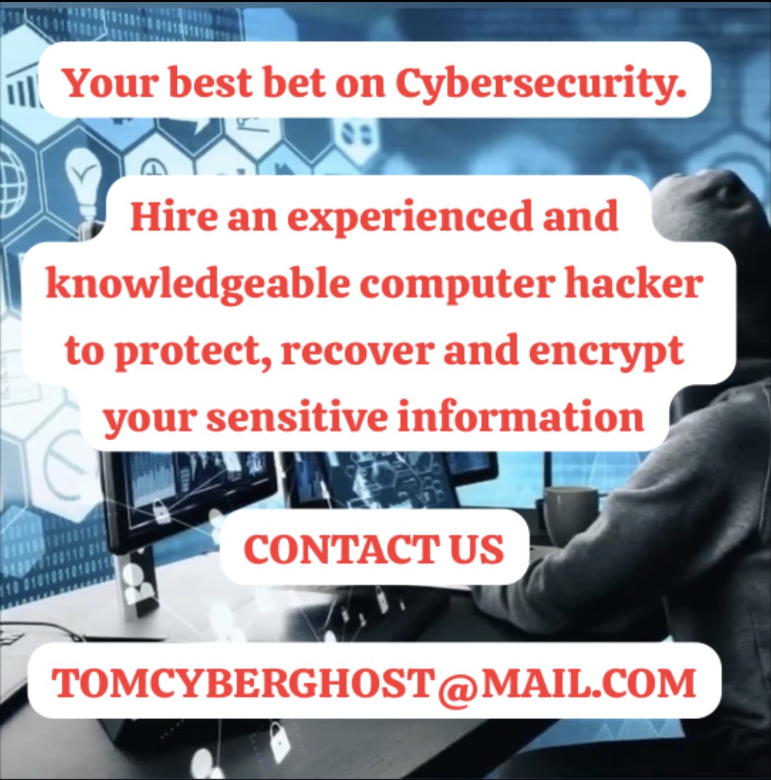 This was remotely done and professionally handled with few requirements. Things were not going well for me in my relationship, I was so confused and I didn't know what to do. things became worse when my husband started telling me he needs to stay long hours at work almost every night for clubs and hang out with friends not knowing he was seeing someone else, it is good as dead when you cant take charge of your relationship because it was so surprising to me what was happening because he wasn’t lacking anything. But I was helped by Fred Hacker who monitored his activity and found out that he had been Cheated by his former Girlfriend and he was sleeping with her every time. it was terrible for me: thanks to Fred who helped out...contact his gmail fredvalcyber ghost @ gm ail .c om