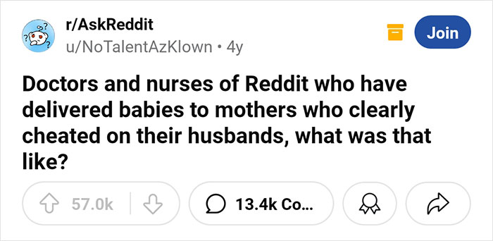 Internet user u/NoTalentAzKlown sparked a massively viral discussion on r/AskReddit. A number of doctors and nurses shared what it was like in the delivery room after they helped deliver babies whose biological fathers were clearly not the moms’ partners. Read on for some of their experiences.