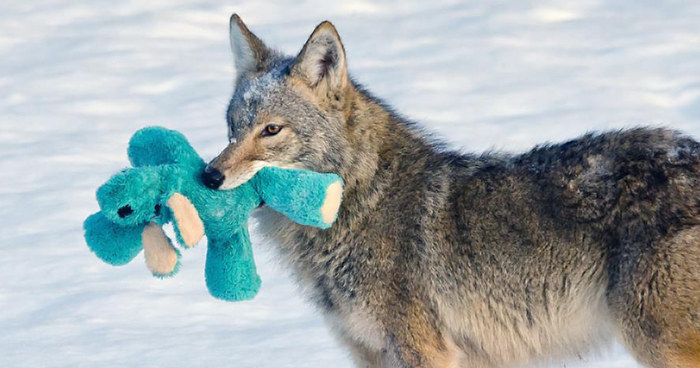Wild Coyote Finds A Toy And Proves That Wild Animals Are As Playful As Pets