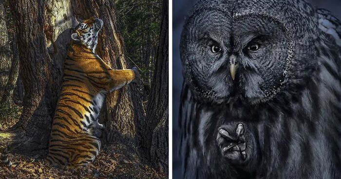 Chair of the judging panel, renowned writer and editor, Rosamund 'Roz' Kidman Cox said in a statement that Gorshkov's photo depicts a scene like no other. "A unique glimpse of an intimate moment deep in a magical forest. Shafts of low winter sun highlight the ancient fir tree and the coat of the huge tigress as she grips the trunk in obvious ecstasy and inhales the scent of tiger on resin, leaving her own mark as her message. It's also a story told in glorious color and texture of the comeback of the Amur tiger, a symbol of the Russian wilderness."