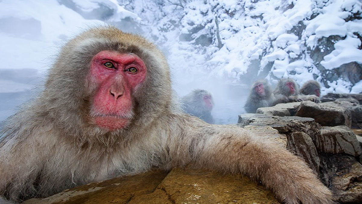 That expression - so sad. Contemplating a lost love, perhaps? For context, these are Japanese Macaques who sit in hot springs in the winter.