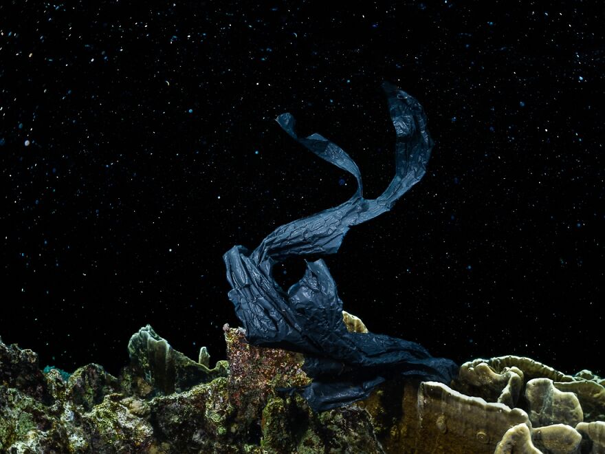 Human replaces endangered species with a more advanced one — the plastic-made species are now ruling the underwater world. The photos of plastic have been made on diving trips in Egypt. Small particles and plankton play role of stars in the new underwater universe.