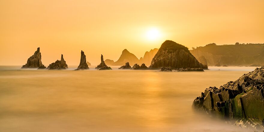 In landscape photography, I always enjoy the light that you can experience especially in the early morning and evening hours and I try to capture a small part of this fascination in my photographs. I have specialized in long exposures at any time of day and prefer the golden and blue hour in my pictures. Perspectives, composition and light play a big role here. A small stony beach with sharp stone formations that the tides have shaped here over the years. A fascinating place where time has stopped. Thus, the thought of the sleeping dinosaur arose in me.