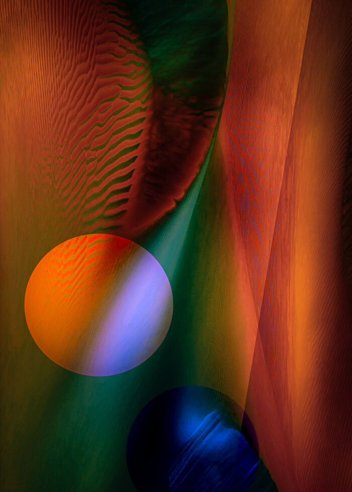 Photography of sand dunes has brought me to a rare world of dignified calmness. Being there is an abstraction from the continuous entropy of life, resulting in a simple and clean harmony. As the recognizable world dissolves in abstraction, the image comes to work on one’s mind like a fragrance or a piece of music, eluding rational understanding and revealing itself fully only as a feeling. Photography of sand dunes, creative edit.