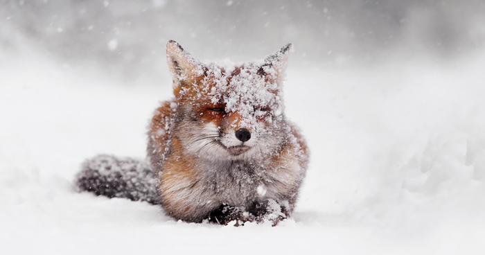 “It was an extremely harsh winter day with heavy snow fall…,” Raimond told Bored Panda about her favorite photo, above. “I could hardly see, let alone take a decent picture. And then this fox showed up. She looked so calm and at ease and just the sight of this magical creature made me forget about all inconveniences and immediately brought some warmth back in my body.”