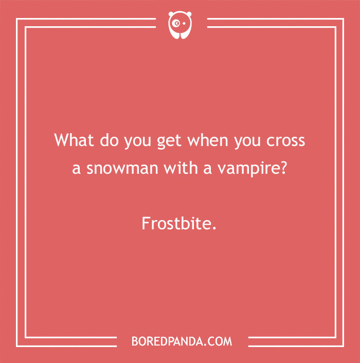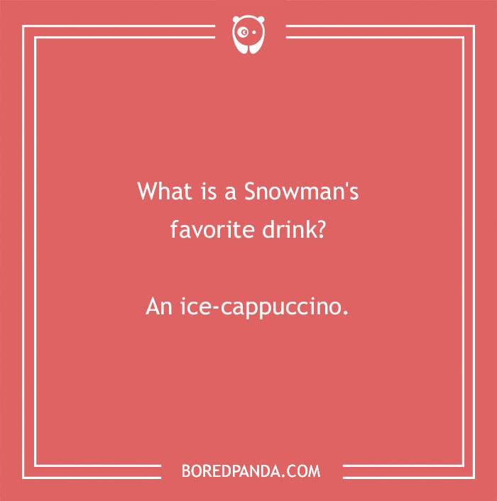 So, if you’re wondering whether all of these funny winter jokes will be about the misery of freezing temperatures and unbearably long evenings, you’re not very far from the truth. However, there are a couple more key topics these corny winter jokes will discuss too. For instance, the need to wear layers upon layers of clothing, a thermos of tea glued to your hand, and the ways your woolen sweater tries to bite you each time you choose to wear it. All right, when you look a bit deeper, the topic of misery is prevalent in each of these silly jokes. But hey, at least we can laugh at it! Especially when half of these funny jokes can absolutely be categorized as winter dad jokes, and we know you like those.