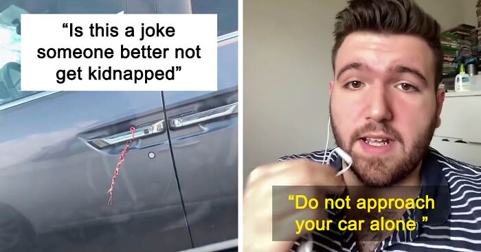 A video by TikTok user Ice.lemon.water has been going viral showing wire wrapped around the door handles of two cars. Later, TikTok user Achunkyguy explained what, in their opinion, this means. He shared his take that this is a tactic that kidnappers allegedly use to distract their targets. In an interview with Bored Panda, Reece, aka Achunkyguy, confirmed that he doesn’t have “cold hard evidence” that this technique is used by kidnappers. “However from the response on some of my videos it’s safe to say it’s a widely known thing amongst women,” he shared his opinion.