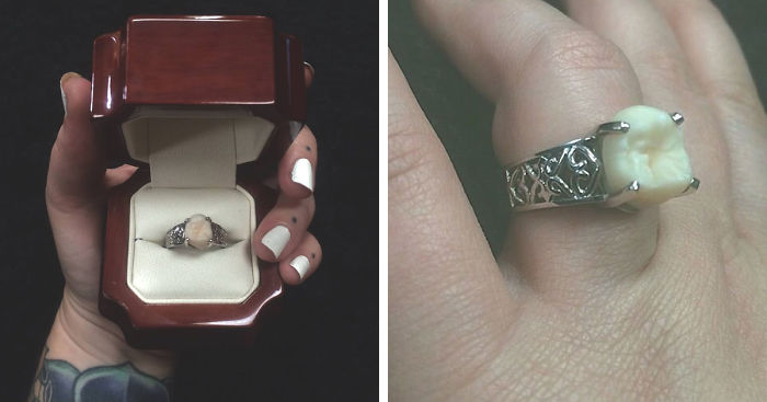When Lucas Unger and Carlee Leifkes were looking for an engagement ring together, they wanted something WAY out of the ordinary – so they decided to have a stone made with Unger’s wisdom tooth as the centerpiece!