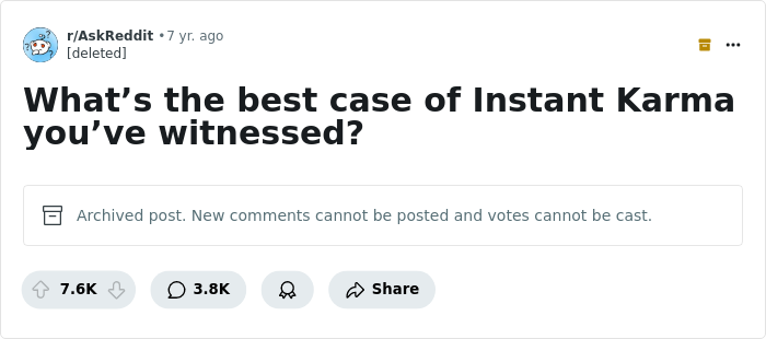 Someone asked, "What’s the best case of Instant Karma you’ve witnessed?" and netizens didn't hold back. They shared the moments etched in their memories of people getting what they deserve, right when they least expected it. From petty annoyances to truly bad behavior, many of the stories serve as reminders that what goes around really does come back around. Sometimes faster than you can say "justice served!"