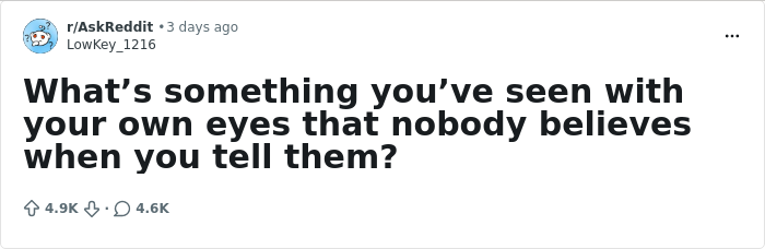 Below, we’ve compiled a list of shocking things people swear they witnessed with their own eyes, even though nobody else has ever believed them. You may find yourself rolling your eyes at these stories too, and we understand why. But it might be more enjoyable to suspend your disbelief for a moment and imagine actually having these experiences. After all, anything’s possible!