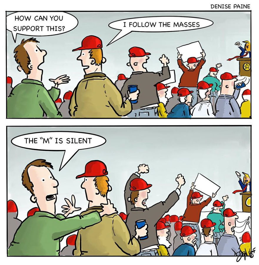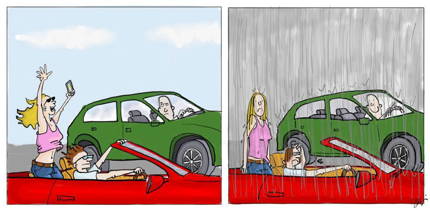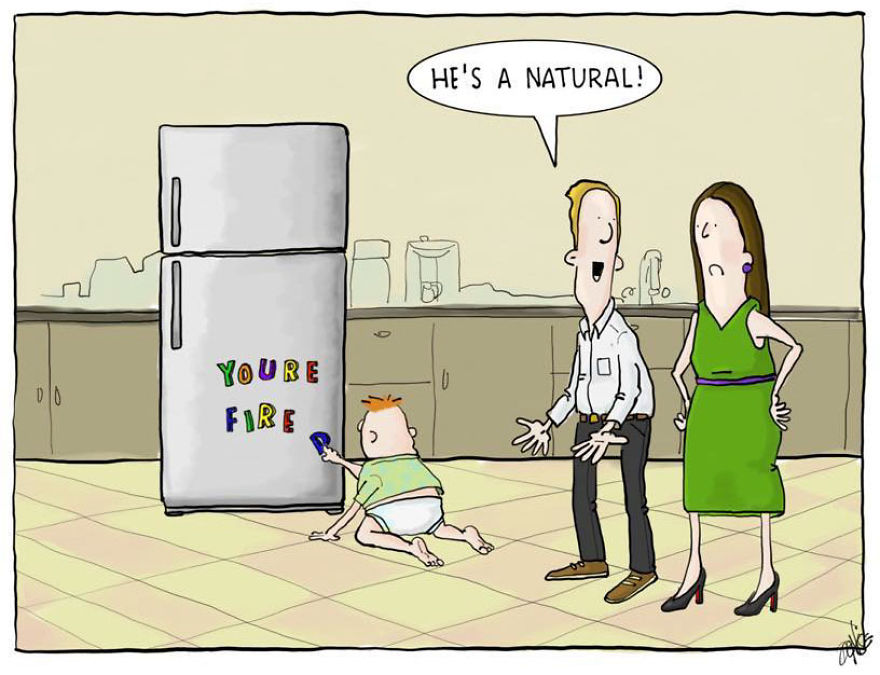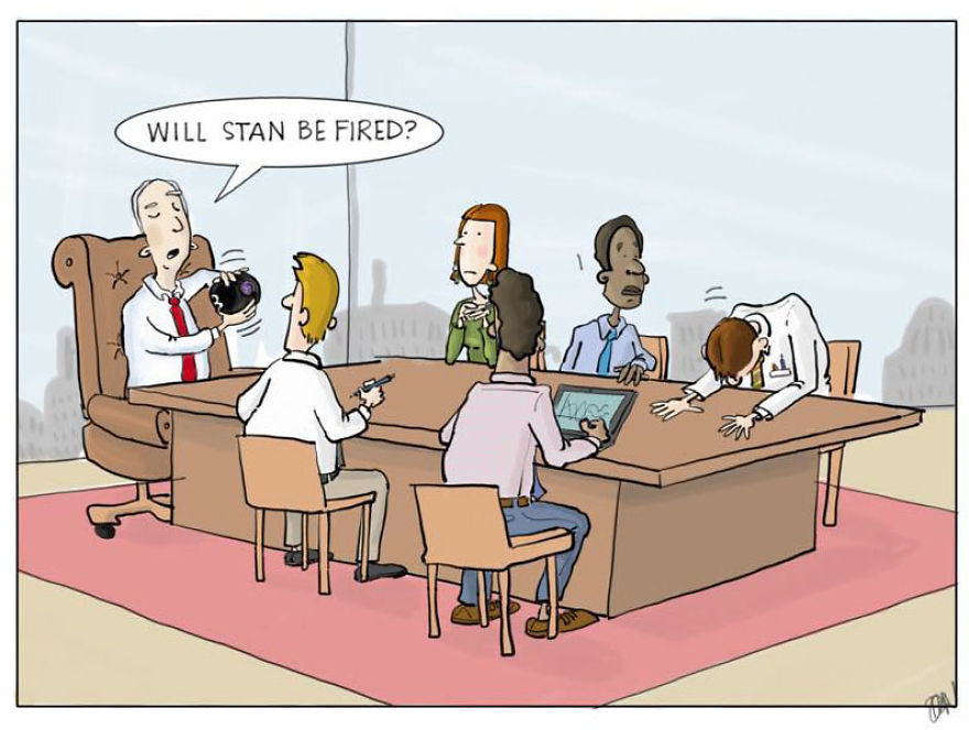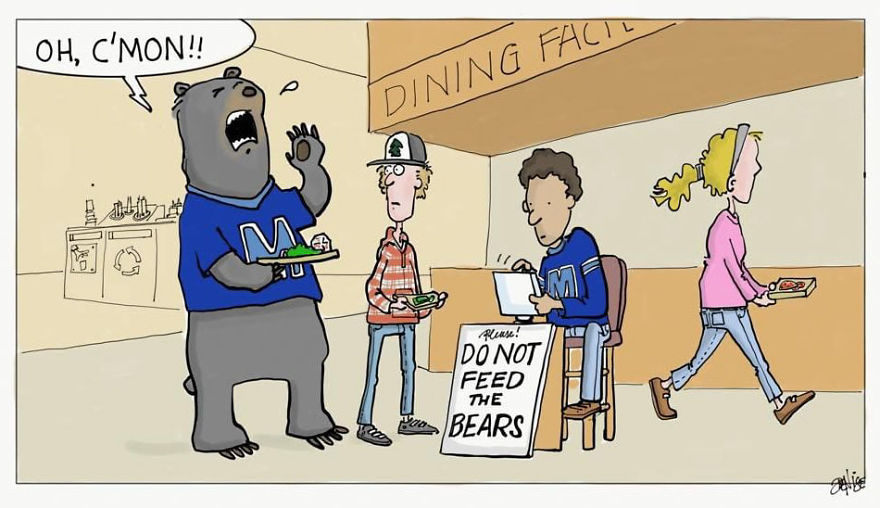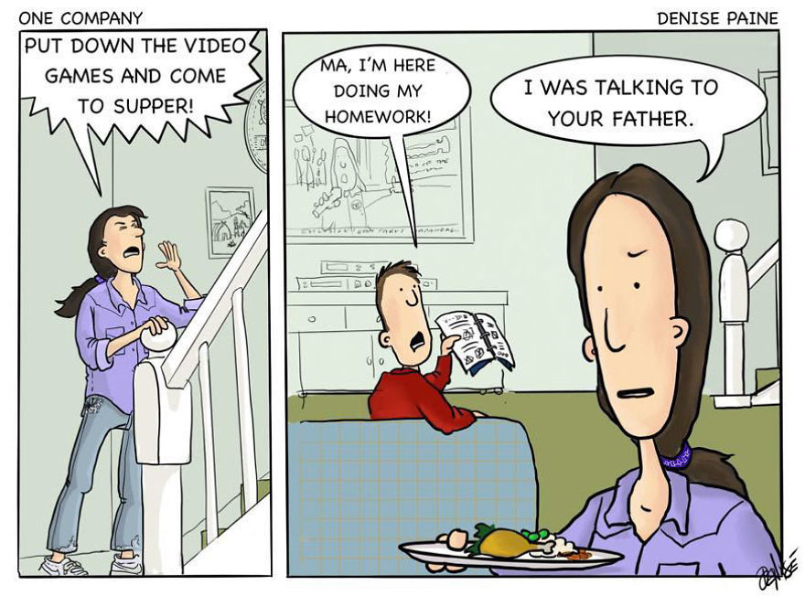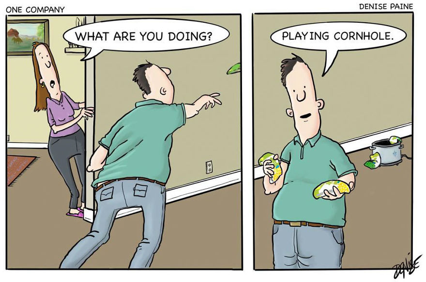 Here are some of my favorites from my comic strips "One Company", "Downeast'r", and "The Hideout." You can check out more of my comics on Bored Panda here and here.