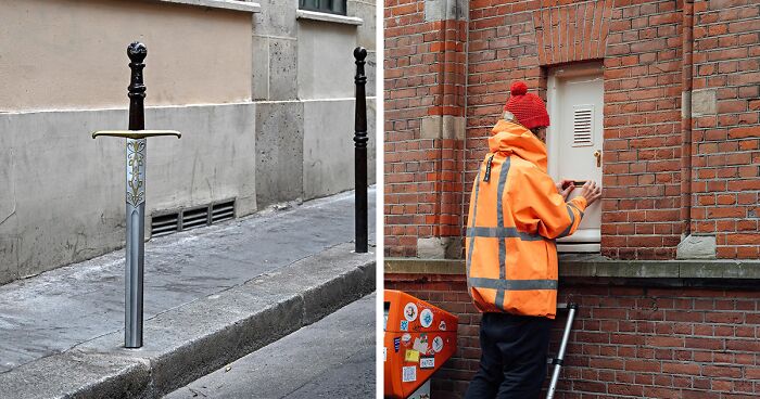 Bored Panda got in touch with Frankey to learn more about his creative process and himself! The artist revealed that during his studies of 'product design,’ he wanted to make products to make people smile. "But there was little room for humor in my studies. Luckily, I came across the book 'Wall and Piece' by Banksy. I was familiar with graffiti but Banksy's disruptive and often humorous works were an eye-opener. After reading the book I started right away on the streets."