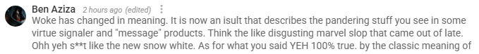 What are you talking about? Wokeness is a mental illness, Orchestrated by a bunch of dummies that have nothing better to do with themselves but to intervene into people's daily lives. Modern films will never stand up to real films from back in the day. Go Woke Go Broke.