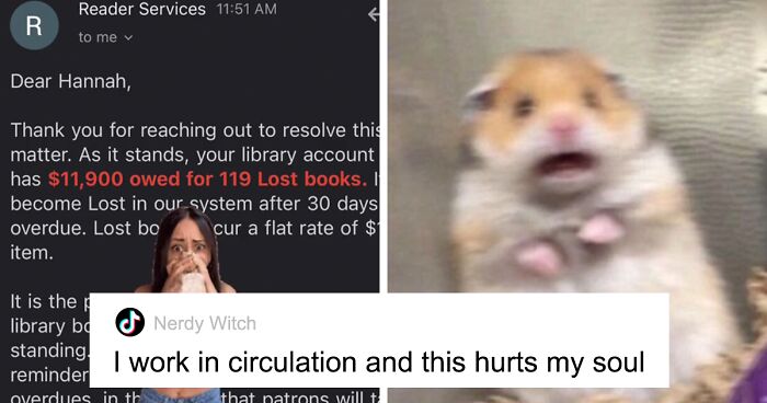 Load More Replies..."But I wasn't done with them!" Yeah...that is not how libraries work. If you don't return the books within the reasonable amount of time, the library will assume you never intend to return them and will charge you the replacement cost. Library books are supposed to be accessible to everyone, which is why they limit the amount of time you can hold onto them.