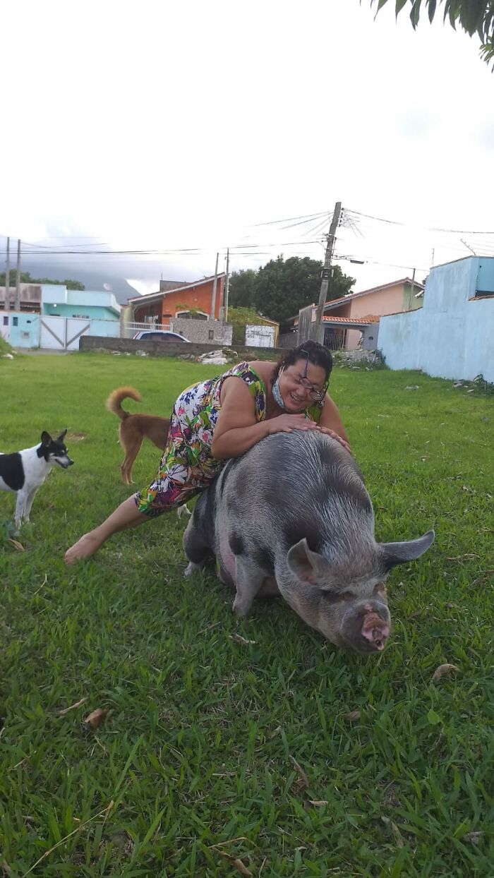 Funny or not, that happened to Rosângela Martins dos Santos de Lara, a woman who lives in the city of Peruíbe, on the coast of São Paulo, Brazil. Only instead of a dog, she bought herself a piglet, which she believed was a special breed that usually doesn’t exceed 20 inches in height and 35 inches in length. Today, 3 years later, the pig weighs about 551 pounds and measures 5 feet. However, even though Rosângela wanted a tiny and cute Wilbur by her side, she got an adorable swine that grew along with her love.