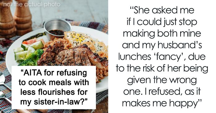Load More Replies...It's concerning that SIL doesn't want ANYBODY enjoying OP's heart-felt lunches. Seems pretty controlling. I don't know how cool I'd be about someone like that watching my kid.