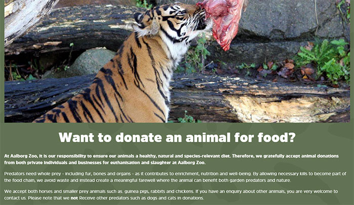 The post read in part: “We gratefully accept animal donations from both private individuals and businesses for euthanisation and slaughter at Aalborg Zoo.”