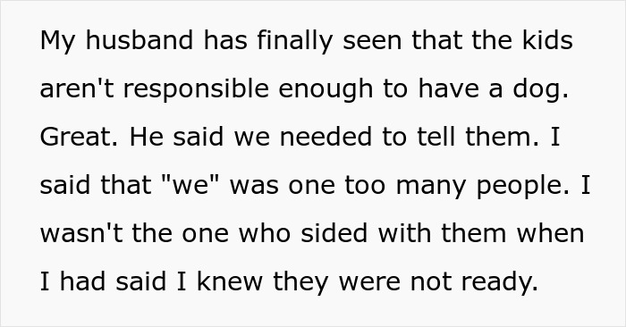 So when Reddit user SeaworthinessOwn9590‘s husband and kids started considering bringing a pup into their home, she made them prove that they were ready for the commitment.
