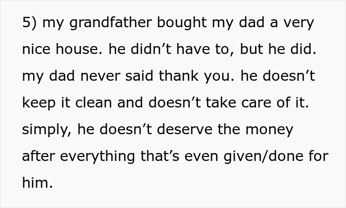 Personal finance expert Orford, the author of ‘The Financially Independent Millennial,’ told Bored Panda that large inheritances that leave out close family members are likely to cause a stir.