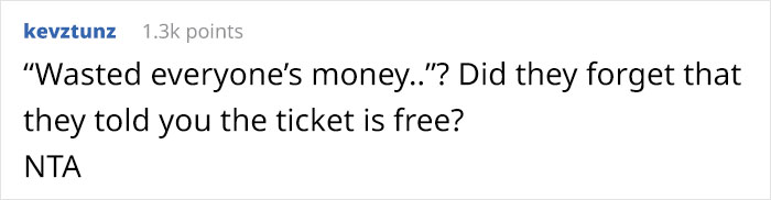 It appeared to be a sweet lady who calmed the OP down and said that those people don’t appreciate her because that is not how you treat a family member, so she shouldn’t go on the trip. The OP listened to the wise words of the woman and left the check-in line, crying to her boyfriend.