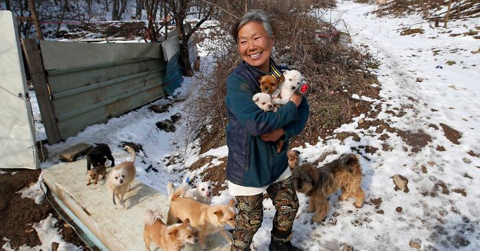 61-year-old Jung Myoung Sook from South Korea has been saving dogs for the last 26 years. So far, she has rescued over 200 pups and takes care of them all. Sook is not well-off, but she not only takes care of strays, she also buys ill-fated pups meant to be sold to restaurants.