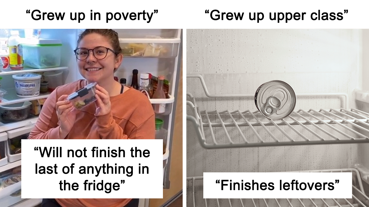 My kids father is soooo wasteful. He grew up privelidged throws everything away when done except niw he only has a basic job and is always out of money because he spends it like its alway there. He never learned to plan and save. I grew up upper part of low class or low middle. We didn't have food scarcity but we grew most of our food and made everything we could ourself and went without if it was expensive unless it was absolutely necessary. As a result now I actually have a good paying job but often try to still think that I have to make it myself, which I've just now learning is sometimes just cheaper to buy it if time is money. Crazy hiw time changes things