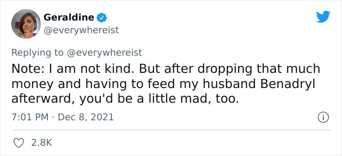 Load More Replies...When you have any kind of allergies, never go to a fine dining restaurant, and especially not for a degustation-menü. Trust-me-bro-I-am-a-chef, but for real. I worked in fine dining restaurants, and although the dinner-time is about 3 hours, there is 5 hours preparation-work before. For a degustation-menü are at least 50-60 kind of elements on plates-all together-and the staff is the very minimum, with a restaurant can function. No time and no staff for special-demands, like lactose-, glutenfree, just to mention the more common ones. I would recommend for you the bistro, or even fine-bistro style restaurants. There the recipes are not so written-in-rock, and the kitchen staff can be more flexible. Btw, that "citrus foam" is a kind of culinary-scam: sounds good, gives nothing wow!-feeling to the dish, but they can charge with a 10 dollar or euro more. It's basically citrus juices, water,seasoning and soya lecithin, what is made foamy with a blender at a degree between 60-70 Celsius.