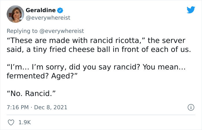 Geraldine told Bored Panda more about her experience at the restaurant. “It’s honestly hard to pick the worst thing about this meal,” she said. “It was a symphony of mistakes made by the kitchen. But honestly, the worst part? It was that the food didn’t even taste good and it was so, so expensive compared to other, wonderful meals we’ve had in Lecce.”