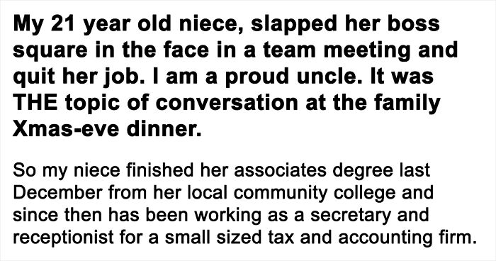 Redditor u/dracula912 shared a story about how his 21-year-old niece quit her job with a bang. Or rather, a slap! The young woman had gotten a job as a secretary at a tax and accounting firm. However, there were plenty of red flags from day one.