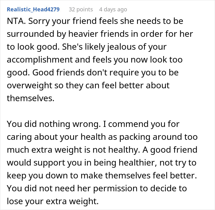 Load More Replies...I lost weight for my best friend's wedding and she was really happy for me! This woman is not normal.