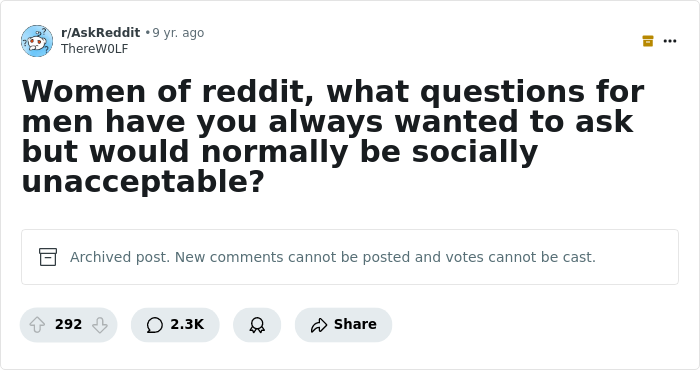 Still, some questions remain unanswered. So, Reddit user ThereW0LF invited all women on the platform to take advantage of the internet’s anonymity and ask men everything they wouldn't dare to in real life.