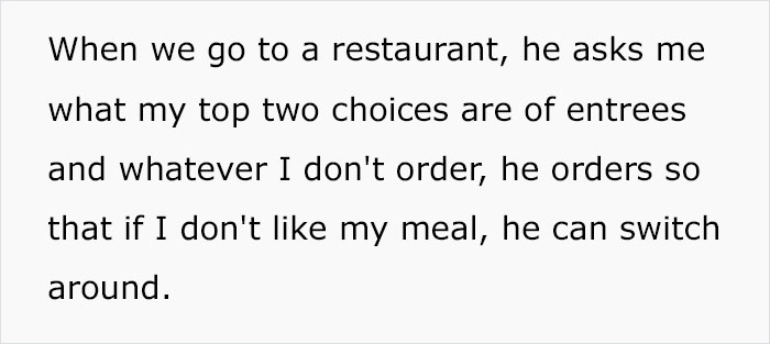 This is sad but a guy was working late + he communicated he wouldn’t be able to take me out for dinner and sent dinner to my home instead.