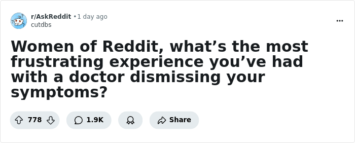 Just take a look at Reddit, where women are speaking out about being ignored, misdiagnosed, or told their symptoms are “all in their head.” How many more experiences like these will it take before women are finally believed?