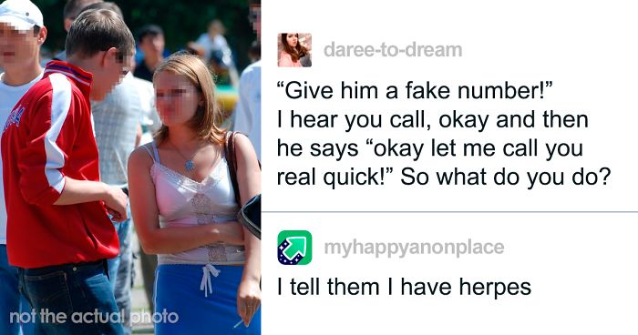 Some people don’t know the meaning of the word “no.” And that makes them incredibly hard to deal with. Luckily, tumblr user daree-to-dream — who has had her share of creepy encounters — decided to share some of the tricks she uses when annoying creeps ask for their phone number. When you think about it, it’s sad that things like this are necessary in the first place, but you never know when you might need them. Better safe than sorry, right?