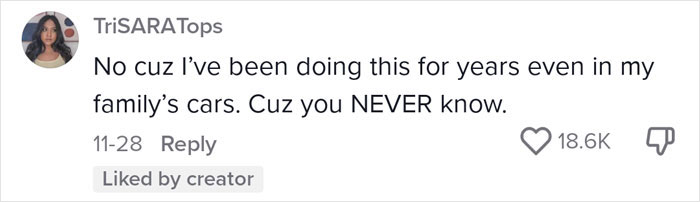 Load More Replies...This is just plain weird. Why would anyone think this would solve problems? Imagine the sheer amount of DNA on an Uber. Does all that implies assault or murder? If the police has arrived to that specific Uber they already know they drove you. Women need to learn self defense. And share your Uber information with a trusted person