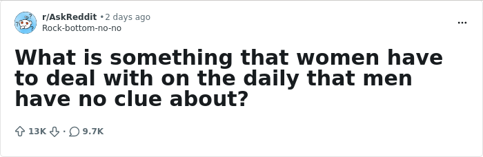 A Reddit user recently asked people to share things that women have to deal with on a daily basis that men have no clue about.