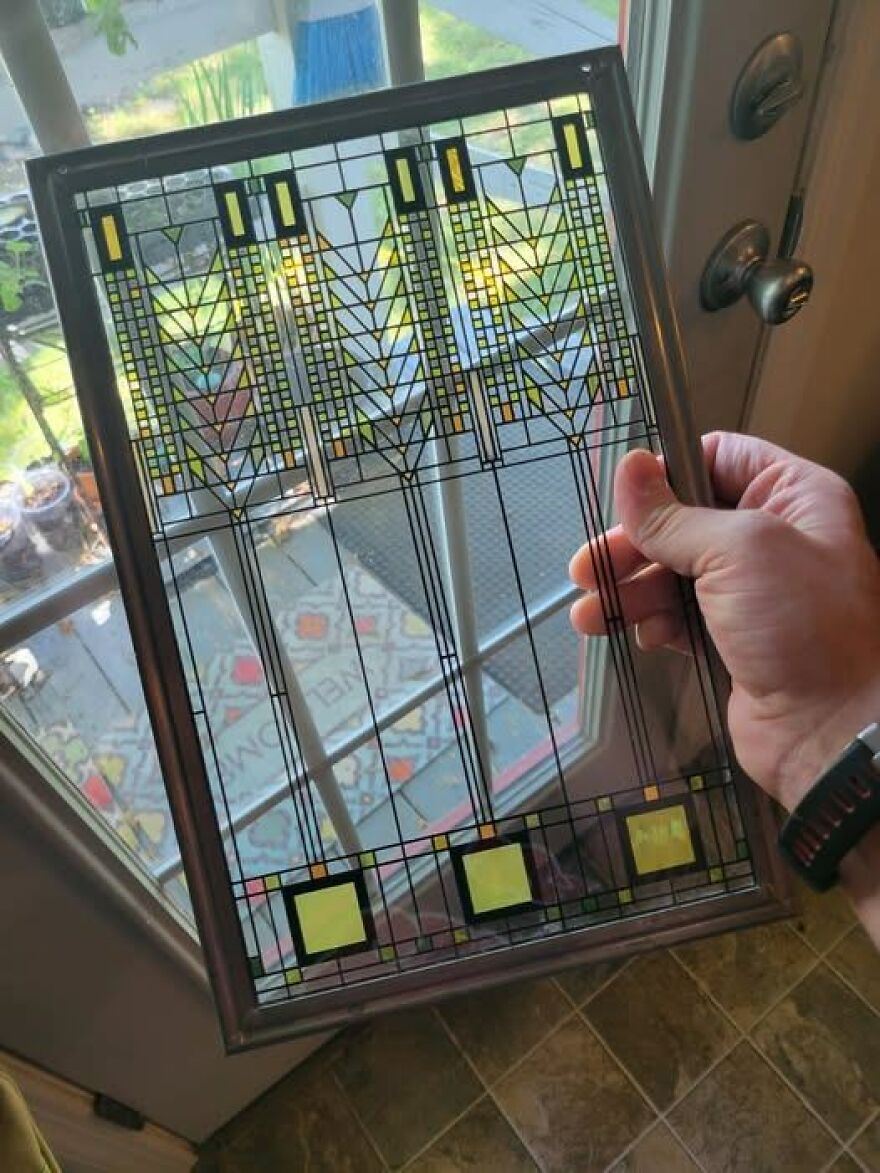 Found this Frank Lloyd wright piece today at my local thrift store! Glass and lead. It was on the cart coming out of the back, but it never made it to the store shelves because I saw it first. For $5 it definitely came home with me in Chattanooga, TN.