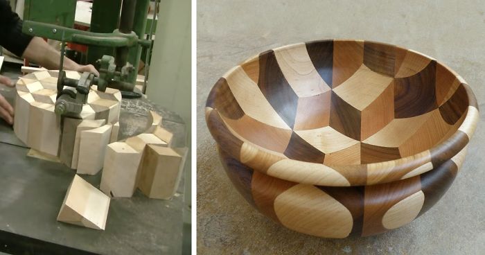 Like this pencil vase shows, despite the long history of their craft, woodworkers still come up with new interesting designs. The Netherlands-based artist Thomas Anton Geurts has created a tumbling bowl from walnut, cherry, and hard maple. The three materials contrast with each other perfectly, allowing Geurts to create a trippy looking 3D arrangement. “I put a little bit of my soul in each piece,” the woodworker said, and you can clearly see it. His attention to detail from cutting the wood to applying the finishing layers of oil makes this bowl a perfect centerpiece for any room or kitchen.