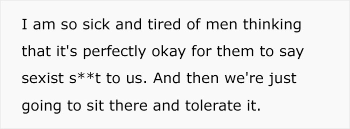 Load More Replies...Guy needs to learn to keep his mouth shut especially when it comes to sexist comments like that! If you think something fine. That doesn't mean the whole world needs to know! Creepy old guy.