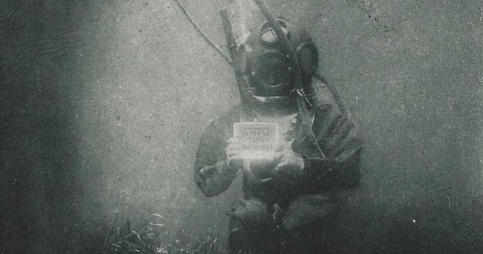 A lot of mystery surrounds this photo. However, we know for sure it’s a portrait of a Romanian oceanographer by Louis Boutan, taken sometime between 1893 and 1899 in Banyuls-sur-Mer, in the South of France. Louis Boutan was a French photography pioneer. At first he worked for a marine biology lab where he fell in love with diving. As time passed, Boutan wanted to show people the underwater world he had the privilege to experience.