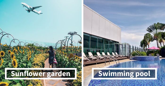 For those who would like to start their vacation early, this airport has a rooftop swimming pool with a Jacuzzi and a bar