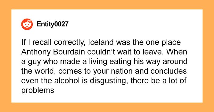 If I Recall Correctly, Iceland was the one place Anthony Bourdain couldn't wait to leave. When a guy who made a living eating his way around the world, comes to your nation and concludes even the alcohol is disgusting, there be a lot of problems.