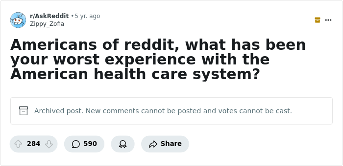 4 years ago my BIL was diagnosed with a clot forming in his heart and was quoted 300k to get it removed. His insurance refused to cover it as it was "non-life-threatening", and would be an "elective procedure". This year he had a heart attack *from the same clot*, and needed life-saving emergency surgery. Insurance refused to cover the 580k bill, because essentially, "it had been diagnosed beforehand and taking preventative measures earlier would have been cheaper". Now instead of recovering stress-free, he has to remind his insurance provider about how THEY denied the preventative care in the first place.